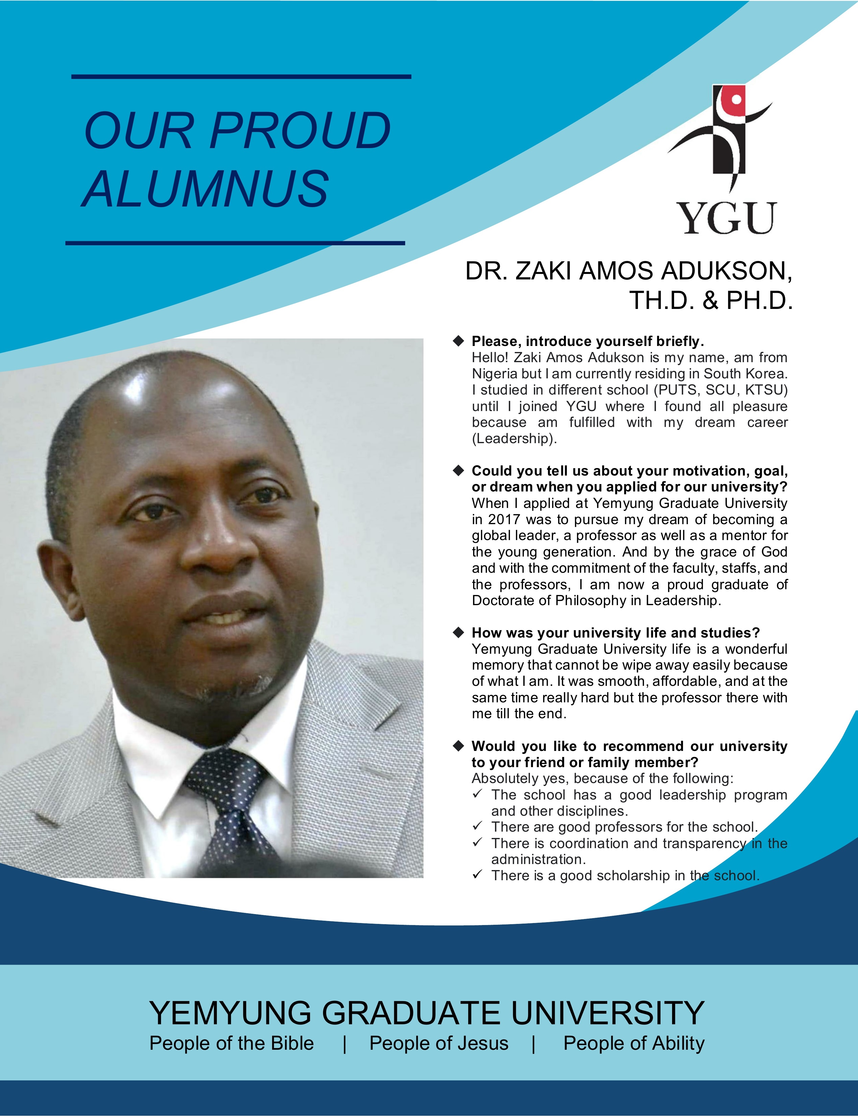 [Leadership] Meet our proud alumnus, Dr. Zaki Amos Audukson